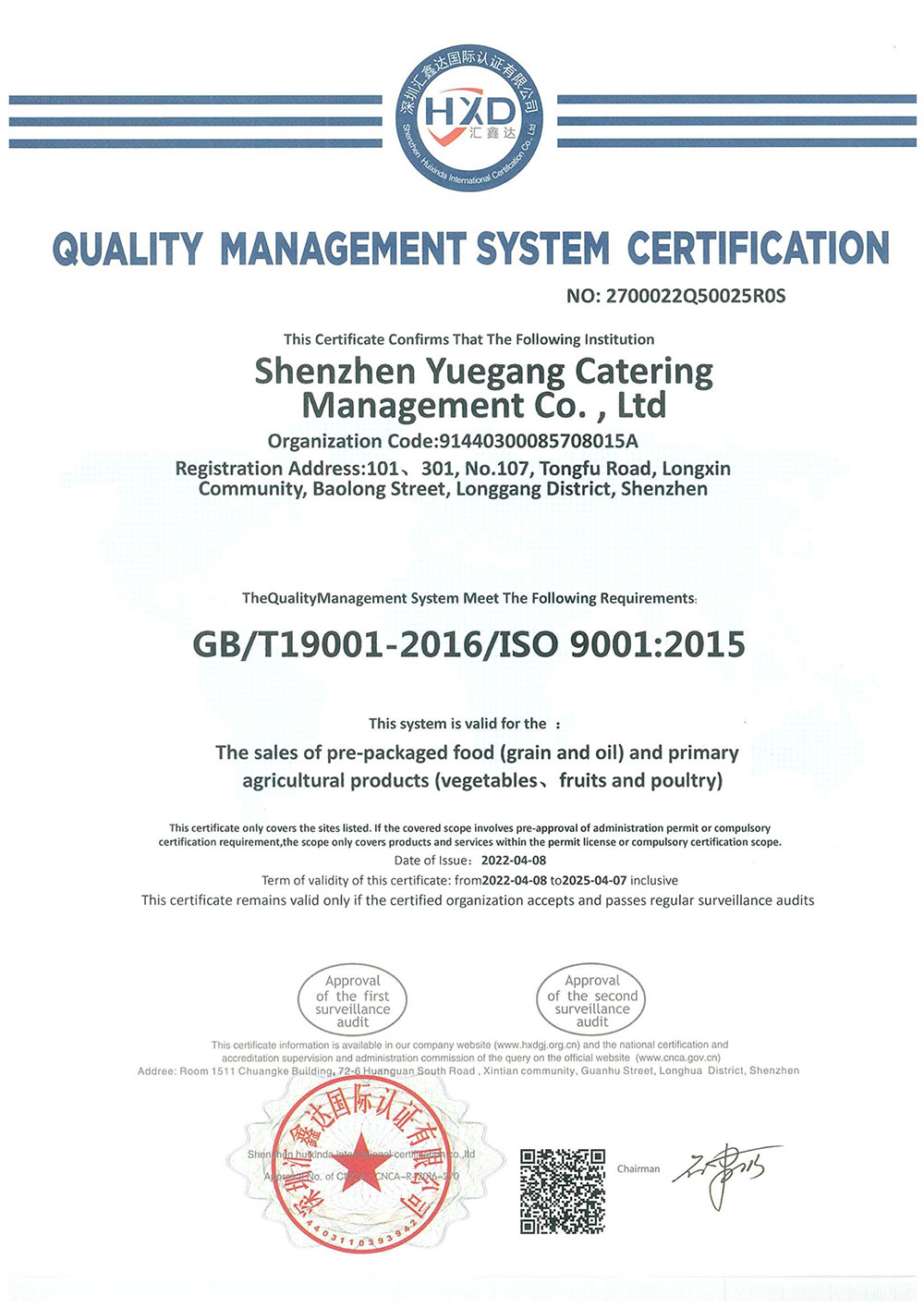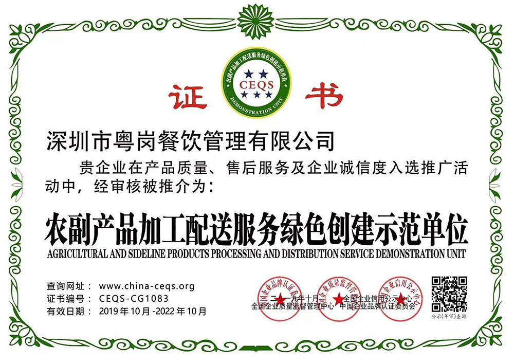 深圳市粵崗餐飲管理有限公司,是一家集蔬菜種植和農(nóng)副產(chǎn)品配送為一體的專業(yè)型餐飲公司,主要為學(xué)校、工廠企事業(yè)機(jī)關(guān)單位提供蔬菜和農(nóng)副產(chǎn)品配送服務(wù)。公司自成立以來始終以質(zhì)優(yōu)價(jià)廉、服務(wù)至上為原則,嚴(yán)格按照ISO:9001國際標(biāo)準(zhǔn)體系進(jìn)行管理。同時(shí)建立了行業(yè)領(lǐng)先的配送中心、大型冷庫和保鮮庫、檢測(cè)中心以及專業(yè)化的配送團(tuán)隊(duì),能長期安全、穩(wěn)定、準(zhǔn)時(shí)的配送貨物。我們所有蔬菜均經(jīng)過初步加工、無黃葉,無泥沙等雜質(zhì),利用率達(dá)97%以上...保障向用戶提供的各類食材的衛(wèi)生和質(zhì)量。公司為了適應(yīng)不同客戶的需求,配有專業(yè)人員和配送車輛,實(shí)行“一對(duì)一”的服務(wù)體制,一心一意的為客戶服務(wù),秉承粵崗誠實(shí)守信、服務(wù)第一、客戶至上的服務(wù)標(biāo)準(zhǔn),真正讓客戶花最少的錢吃最好的菜。粵崗多年來何以欣欣向榮,因?yàn)槲覀冎乐挥杏掠趽?dān)當(dāng)責(zé)任,才能承擔(dān)更大的責(zé)任,就是因?yàn)?粵崗員工貫徹公司態(tài)度決定一切、細(xì)節(jié)決定成敗的真理,從質(zhì)量抓起,從服務(wù)做起,才創(chuàng)造了如今的規(guī)模化供應(yīng)、統(tǒng)一性配送、專業(yè)化服務(wù)的粵崗。